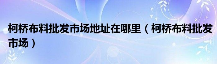 柯桥布料批发市场地址在哪里(柯桥布料批发市场)
