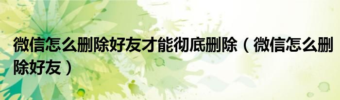 微信怎么删除好友才能彻底删除(微信怎么删除好友)