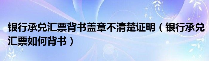 银行承兑汇票背书盖章不清楚证明(银行承兑汇票如何背书)