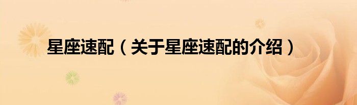 大家好,小虎来为大家解答以上的问题。星座速配,关于星座速配的介绍很多人还不知道,现在让我们一起来看看吧!