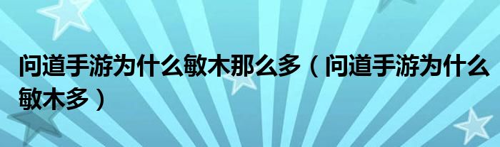 大家好,小晋来为大家解答以下问题,关于问道手游为什么敏木那么多,问道手游为什么敏木多很多人还不知道,今天让我们一起来看看吧!