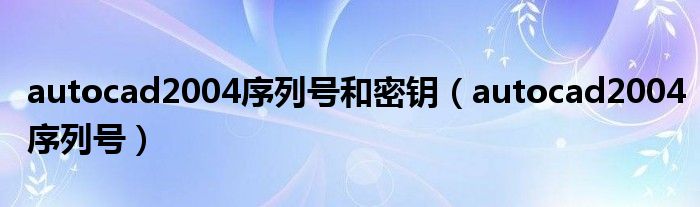 1、如果你在CAD制图领域做过一些研究,那么你对AutoCAD一定不会陌生,尤其是2004版。相信还是有很多用户在用的。而AutoCAD一直采用的是收费模式,但是有了授权码和序列号,这样的问题就可以轻松解决了。所以边肖将为您带来一个完整的AutoCAD2004授权码激活码共享集合。让我们看一看。