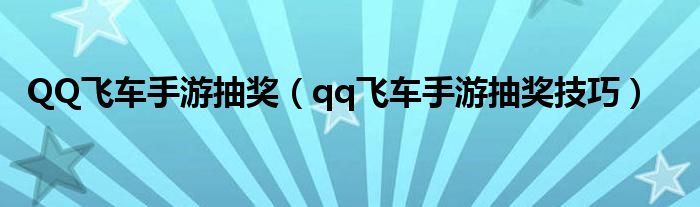 大家好,小晋来为大家解答以下问题,关于QQ飞车手游抽奖,qq飞车手游抽奖技巧很多人还不知道,今天让我们一起来看看吧!