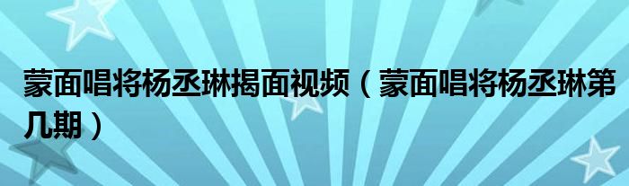 大家好,小晋来为大家解答以下问题,关于蒙面唱将杨丞琳揭面视频,蒙面唱将杨丞琳第几期很多人还不知道,今天让我们一起来看看吧!