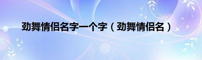 大家好,来宝来为大家解答以下问题,劲舞情侣名字一个字,劲舞情侣名很多人还不知道,今天让我们一起来看看吧!