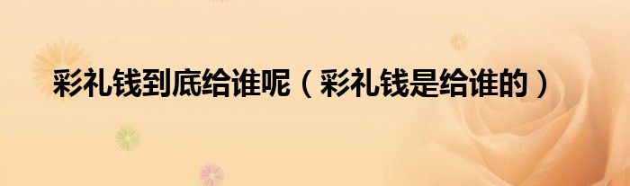 1、彩礼钱是给谁的