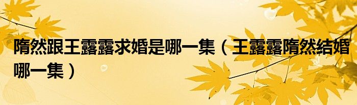 大家好,小晋来为大家解答以下问题,关于隋然跟王露露求婚是哪一集,王露露隋然结婚哪一集很多人还不知道,今天让我们一起来看看吧!
