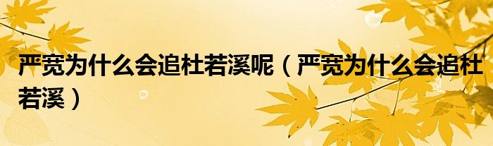 大家好,小晋来为大家解答以下问题,关于严宽为什么会追杜若溪呢,严宽为什么会追杜若溪很多人还不知道,今天让我们一起来看看吧!
