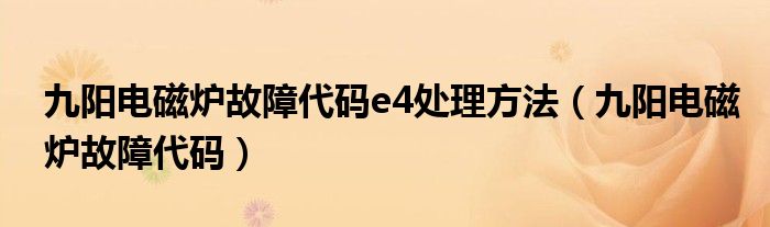 大家好,来宝来为大家解答以下问题,九阳电磁炉故障代码e4处理方法,九阳电磁炉故障代码很多人还不知道,今天让我们一起来看看吧!