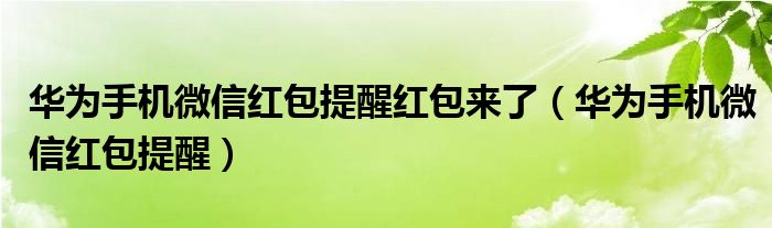 大家好,小晋来为大家解答以下问题,关于华为手机微信红包提醒红包来了,华为手机微信红包提醒很多人还不知道,今天让我们一起来看看吧!