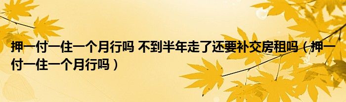大家好,小晋来为大家解答以下问题,关于押一付一住一个月行吗 不到半年走了还要补交房租吗,押一付一住一个月行吗很多人还不知道,今天让我们一起来看看吧!