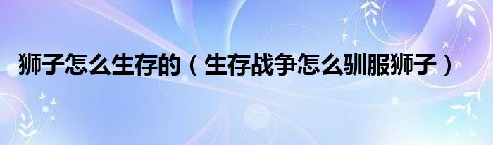 大家好,小晋来为大家解答以下问题,关于狮子怎么生存的,生存战争怎么驯服狮子很多人还不知道,今天让我们一起来看看吧!