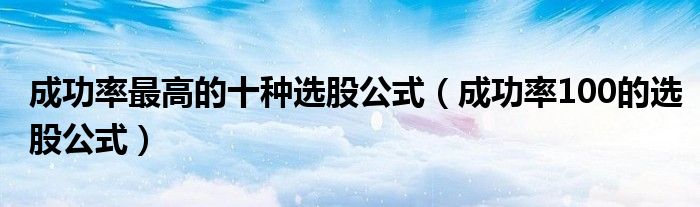 大家好,小晋来为大家解答以下问题,关于成功率最高的十种选股公式,成功率100的选股公式很多人还不知道,今天让我们一起来看看吧!