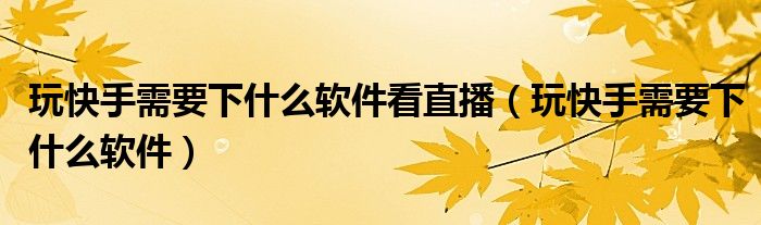 大家好,小晋来为大家解答以下问题,关于玩快手需要下什么软件看直播,玩快手需要下什么软件很多人还不知道,今天让我们一起来看看吧!