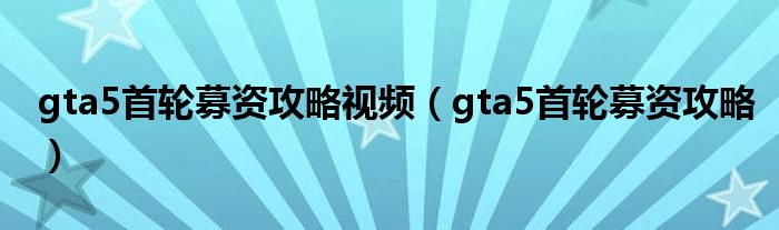 gta5首轮募资攻略视频(gta5首轮募资攻略)