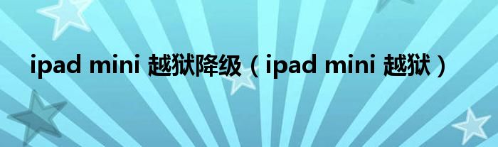 大家好,来宝来为大家解答以下问题,ipad mini 越狱降级,ipad mini 越狱很多人还不知道,今天让我们一起来看看吧!