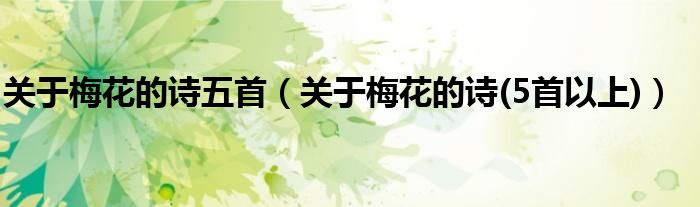 关于关于梅花的诗五首,关于梅花的诗(5首以上)这个很多人还不知道,今天菲菲来为大家解答以上的问题,现在让我们一起来看看吧!
