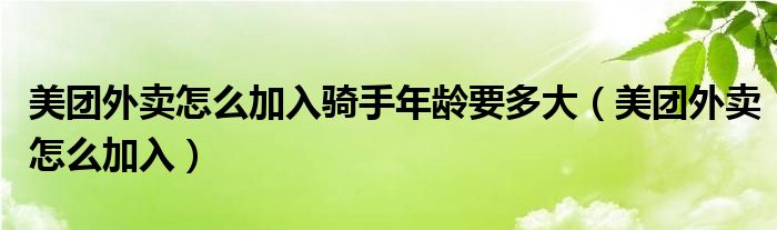 美团外卖怎么加入骑手年龄要多大(美团外卖怎么加入)