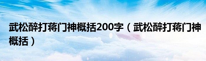 关于武松醉打蒋门神概括200字,武松醉打蒋门神概括这个很多人还不知道,今天菲菲来为大家解答以上的问题,现在让我们一起来看看吧!