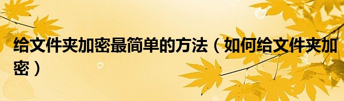 给文件夹加密最简单的方法(如何给文件夹加密)