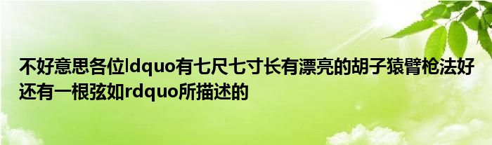 关于不好意思各位ldquo有七尺七寸长有漂亮的胡子猿臂枪法好还有一根弦如rdquo所描述的这个很多人还不知道,今天菲菲来为大家解答以上的问题,现在让我们一起来看看吧!