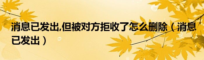大家好,小晋来为大家解答以下问题,关于消息已发出,但被对方拒收了怎么删除,消息已发出很多人还不知道,今天让我们一起来看看吧!