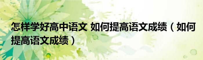 关于怎样学好高中语文 如何提高语文成绩,如何提高语文成绩这个很多人还不知道,今天菲菲来为大家解答以上的问题,现在让我们一起来看看吧!