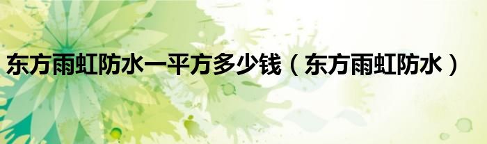 关于东方雨虹防水一平方多少钱,东方雨虹防水这个很多人还不知道,今天菲菲来为大家解答以上的问题,现在让我们一起来看看吧!