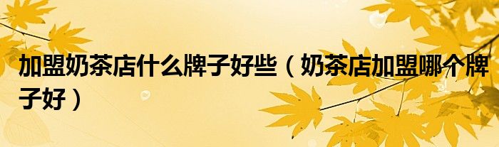 关于加盟奶茶店什么牌子好些,奶茶店加盟哪个牌子好这个很多人还不知道,今天菲菲来为大家解答以上的问题,现在让我们一起来看看吧!