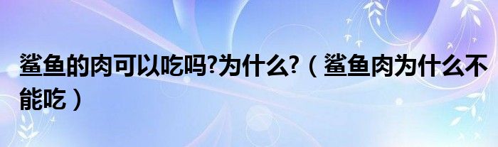 关于鲨鱼的肉可以吃吗?为什么?,鲨鱼肉为什么不能吃这个很多人还不知道,今天菲菲来为大家解答以上的问题,现在让我们一起来看看吧!