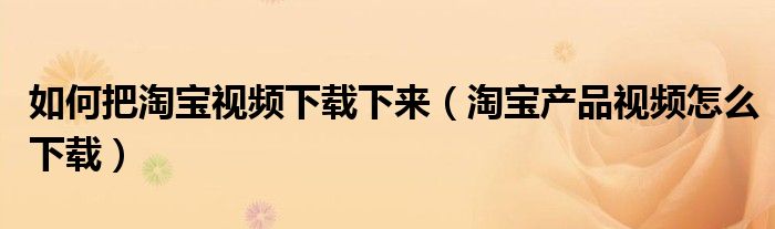 如何把淘宝视频下载下来(淘宝产品视频怎么下载)