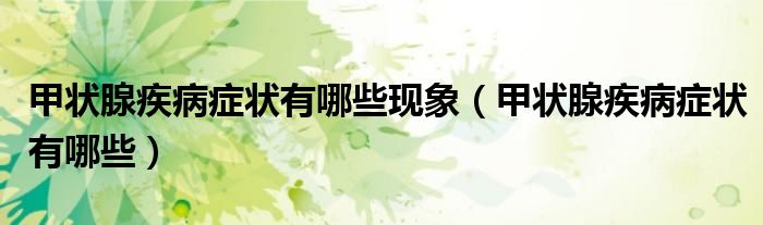 关于甲状腺疾病症状有哪些现象,甲状腺疾病症状有哪些这个很多人还不知道,今天菲菲来为大家解答以上的问题,现在让我们一起来看看吧!