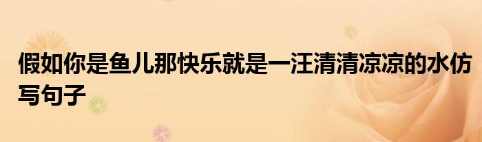 关于假如你是鱼儿那快乐就是一汪清清凉凉的水仿写句子这个很多人还不知道,今天菲菲来为大家解答以上的问题,现在让我们一起来看看吧!