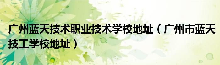 关于广州蓝天技术职业技术学校地址,广州市蓝天技工学校地址这个很多人还不知道,今天菲菲来为大家解答以上的问题,现在让我们一起来看看吧!