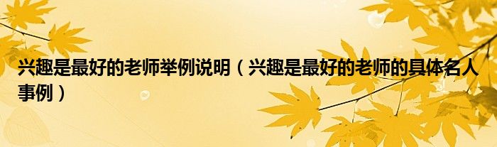 关于兴趣是最好的老师举例说明,兴趣是最好的老师的具体名人事例这个很多人还不知道,今天菲菲来为大家解答以上的问题,现在让我们一起来看看吧!