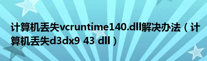 大家好,小飞来为大家解答以上问题,计算机丢失vcruntime140.dll解决办法,计算机丢失d3dx9 43 dll很多人还不知道,现在让我们一起来看看吧!