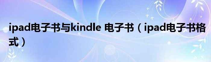 ipad电子书与kindle 电子书(ipad电子书格式)