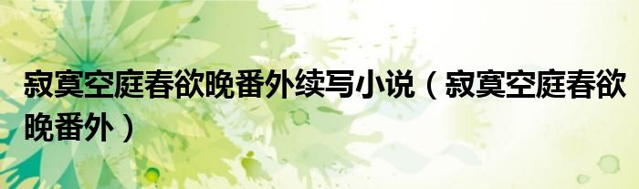 寂寞空庭春欲晚番外续写小说,寂寞空庭春欲晚番外这个很多人还不知道,小飞来为大家解答以上的问题。现在让我们一起来看看吧!