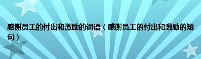 感谢员工的付出和激励的词语,感谢员工的付出和激励的短句这个很多人还不知道,小飞来为大家解答以上的问题。现在让我们一起来看看吧!