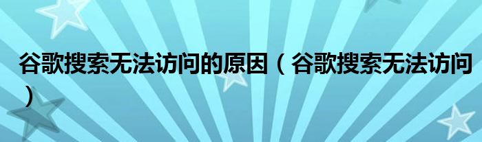 大家好,慧慧来为大家解答以上问题,谷歌搜索无法访问的原因,谷歌搜索无法访问很多人还不知道,现在让我们一起来看看吧!