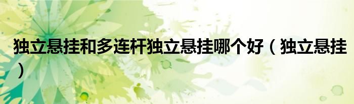 大家好,小飞来为大家解答以上的问题。独立悬挂和多连杆独立悬挂哪个好,独立悬挂这个很多人还不知道,现在让我们一起来看看吧!
