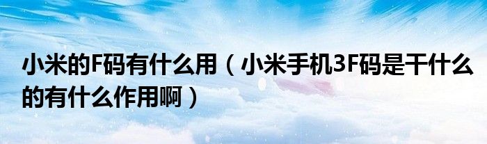 大家好,小常来为大家解答以上问题。小米的F码有什么用,小米手机3F码是干什么的有什么作用啊很多人还不知道,现在让我们一起来看看吧!