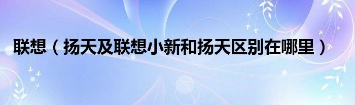 2,联想扬天和联想区别 :联想扬天是联想旗下的一个商用系列,主要面向企业、办公用户,强调实用性和高效率。联想除了扬天、启天等商用系列外,还有面向个人用户的联想品牌,其产品设计更注重时尚、娱乐、个性化等方面。以下是详细介绍:  一、面向的用户  1、扬天系列是联想旗下的一个商用系列产品,主要面对企业、办公用户使用,是专为100人以上的中型企业用户设计的产品系列;  2、联想是联想集团旗下的电脑品牌,除了拥有扬天、启天等商用电脑系列外,还拥有个人及家庭的联想、ThinkPad品牌电脑,其中有拯救者游戏本系列、轻薄本小新系列和便携本YOGA系列等;  二、产品特点  1、扬天系列由国外设计团队全程打造的新产品,外观秉承了Think产品的设计风格,稳重有思想力,更注重企业的效率和实用性,提供整体的解决方案;  2、联想消费产品的电脑产品在外形设计和功能性上面更侧重于消费者对于时尚个性化的需要,功能性上更偏向于日常使用。