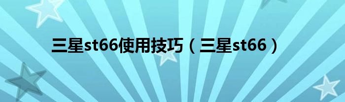三星st66使用技巧(三星st66)