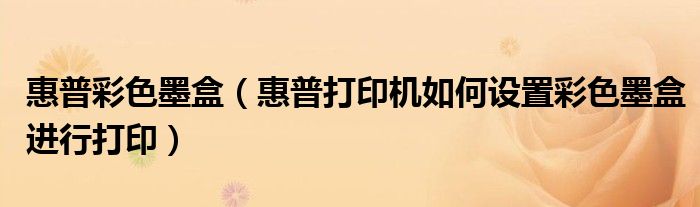 1,惠普打印机如何设置彩色墨盒进行打印:一般的HP喷墨打印机大多都是4种颜色的,它们是把4种颜色混合起来配出来成为你想要的那种颜色,所以,要打印彩色,不能却少黑色的墨盒的!