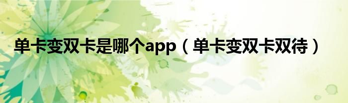 单卡变双卡是哪个app(单卡变双卡双待)