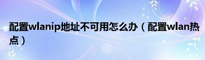 大家好,慧慧来为大家解答以上问题,配置wlanip地址不可用怎么办,配置wlan热点很多人还不知道,现在让我们一起来看看吧!