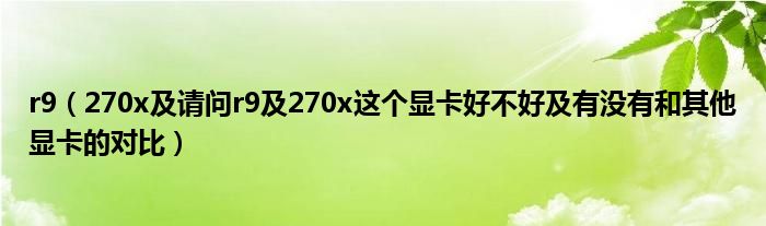 大家好,小常来为大家解答以上问题。r9,270x及请问r9及270x这个显卡好不好及有没有和其他显卡的对比很多人还不知道,现在让我们一起来看看吧!