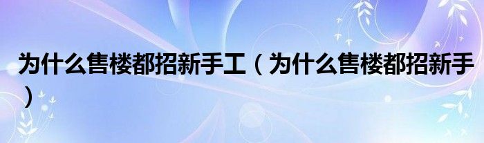 为什么售楼都招新手工(为什么售楼都招新手)