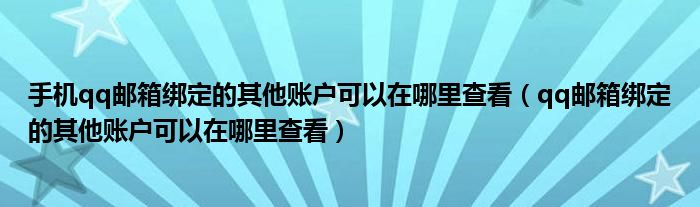 大家好,跳跳为你解答以上问题。手机qq邮箱绑定的其他账户可以在哪里查看,qq邮箱绑定的其他账户可以在哪里查看这个问题很多人还不知道,现在让我们一起来看看吧!